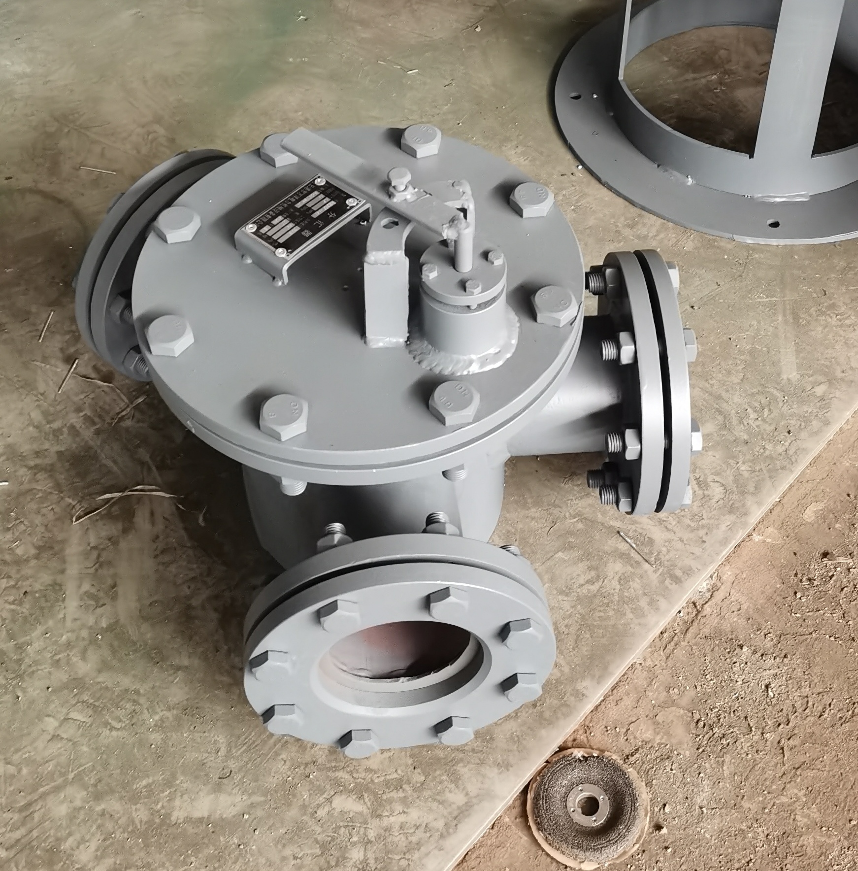 分匯器是一個三通閥,通過導(dǎo)向板的切換可使膠球進(jìn)入需要清洗的一側(cè)凝汽器中工作。一般一臺機(jī)組需兩臺分匯器,其進(jìn)口通徑為DN100,分配口為DN89,膠球投用時可通過窺視窗觀察運(yùn)行情況。